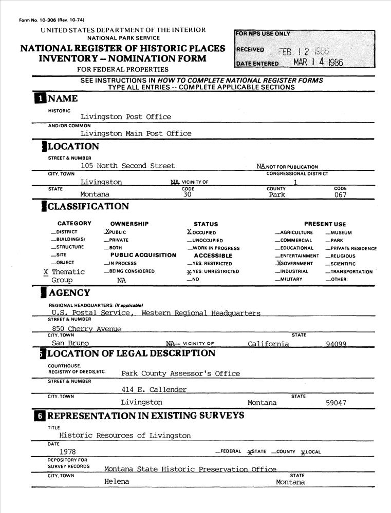 US Post Office--Livingston Main