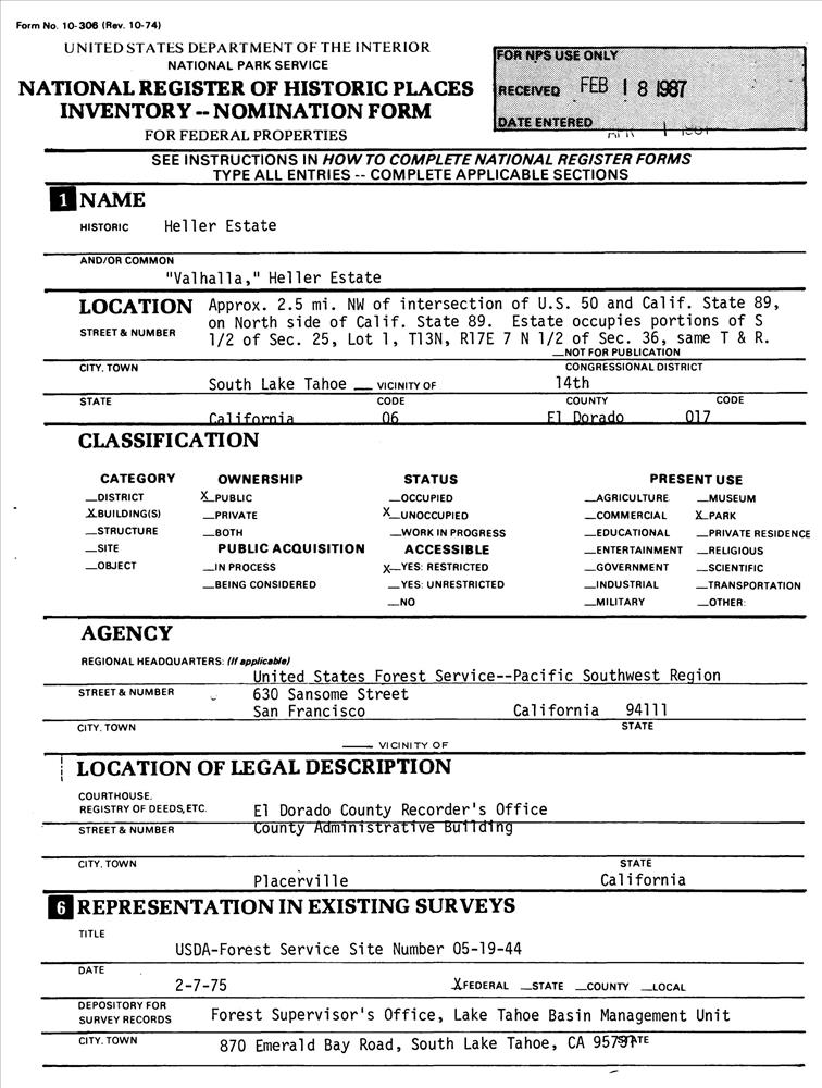 South Lake Tahoe ; NW of US 50 and CA 89 jct. on N side of CA 89