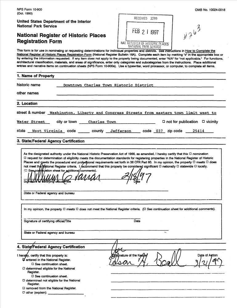 Charles Town ; Roughly, Washington, Liberty and Congress Sts. from eastern town limits to Water St.