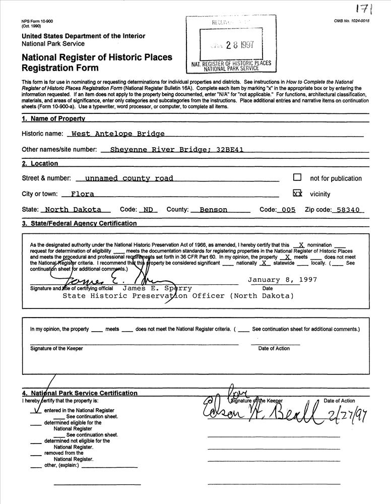 Flora ; Across the Sheyenne River, unnamed co. rd., approximately 30 mi. SE of jct. of ND 30 and US 2