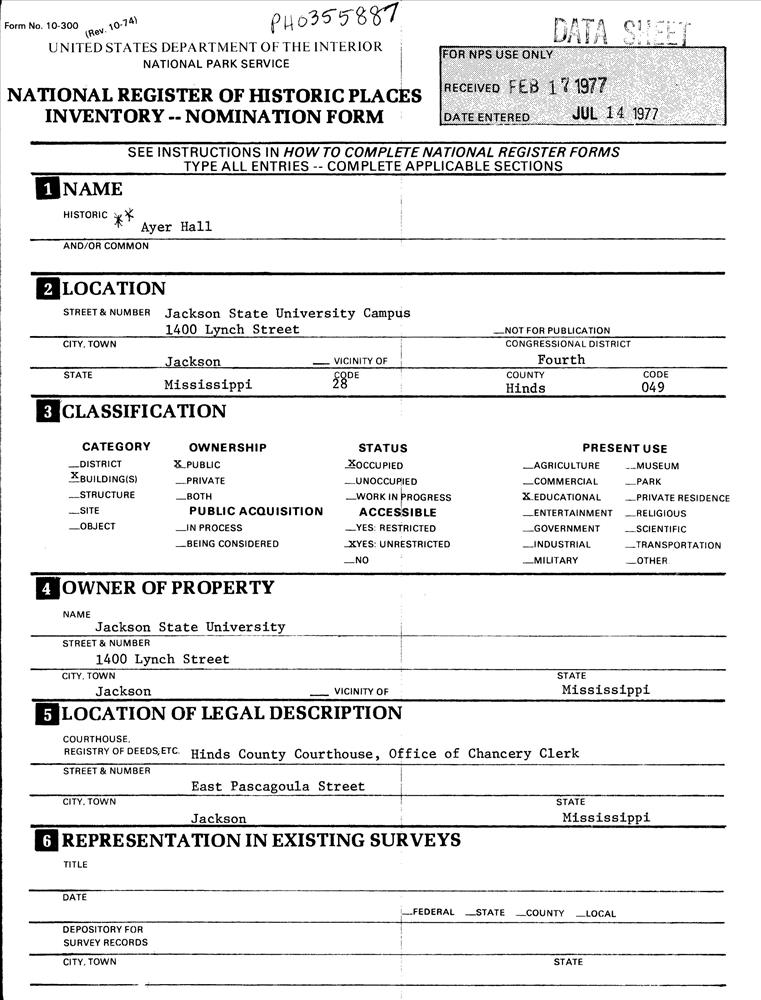 Jackson ; 1400 Lynch St. on Jackson State University campus