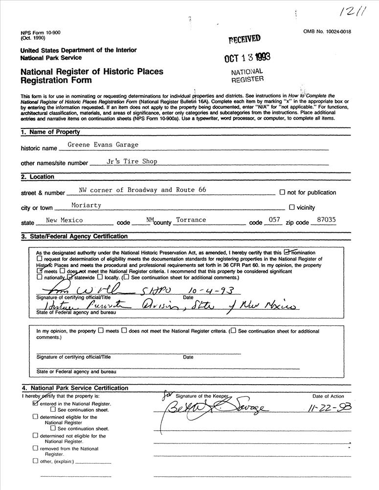 Moriarty ; Jct. of Broadway and Rt. 66, NW corner