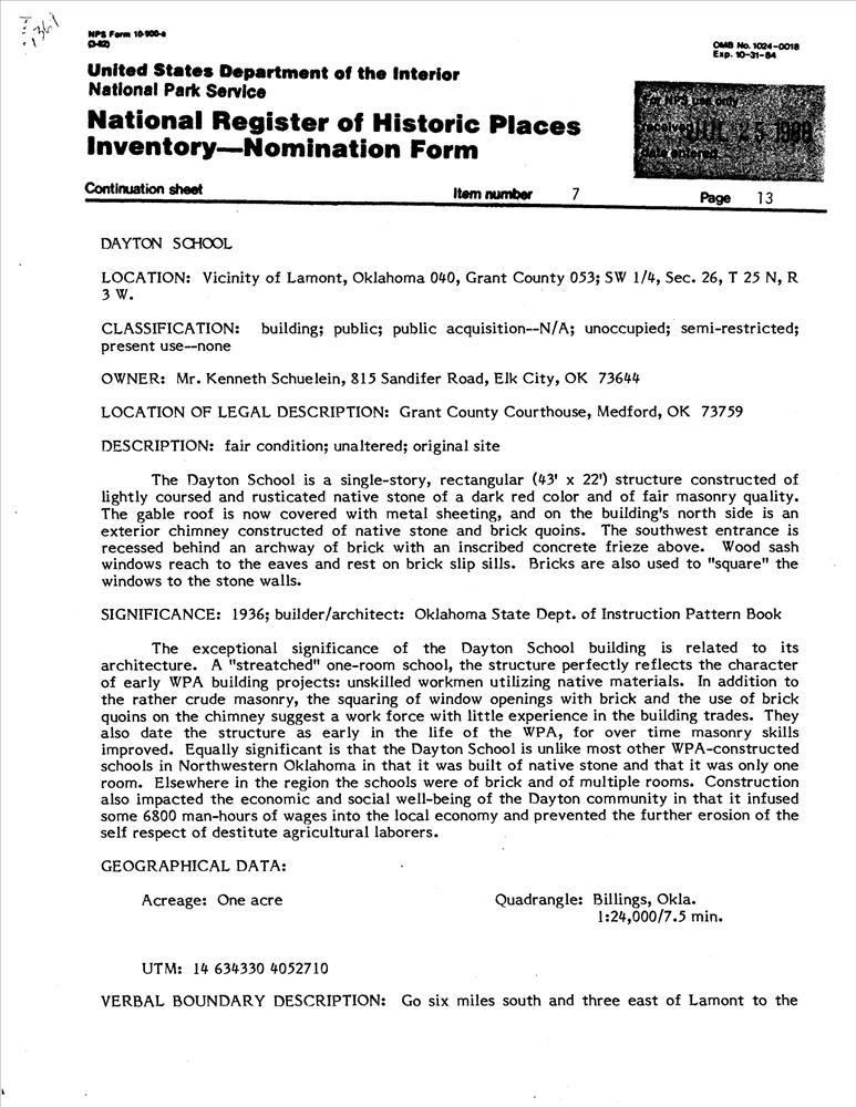 WPA Public Bldgs., Recreational Facilities and Water Quality Improvements in Northwestern Oklahoma, 1935--1943 TR