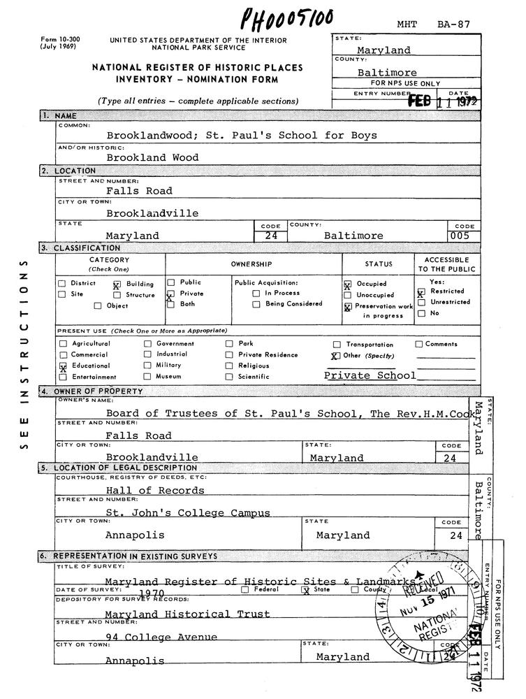 Brooklandville ; Falls Rd.