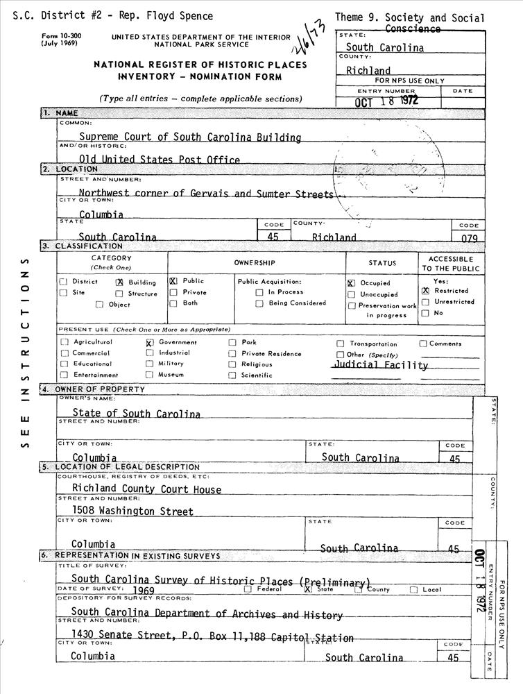 Columbia ; NW corner of Gervais and Sumter Sts.