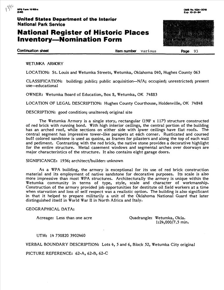 WPA Public Bldgs., Recreational Facilities and Cemetery Improvements in Southeastern Oklahoma, 1935--1943 TR