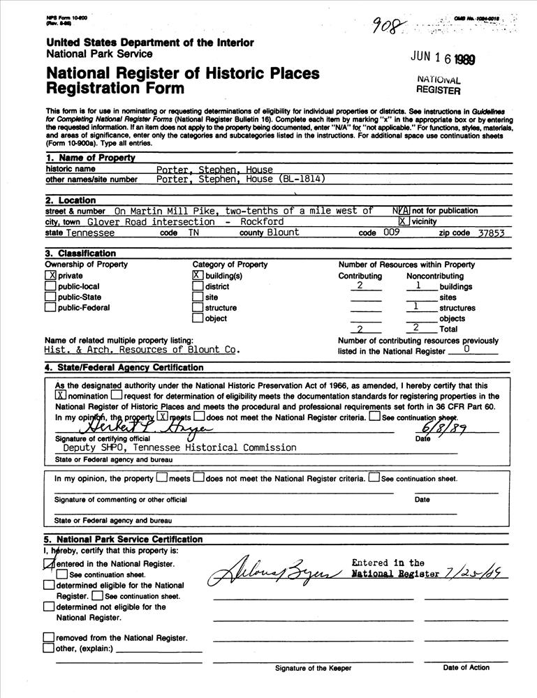Rockford ; Martin Mill Pike, 0.2 mi. W of Glover Rd.