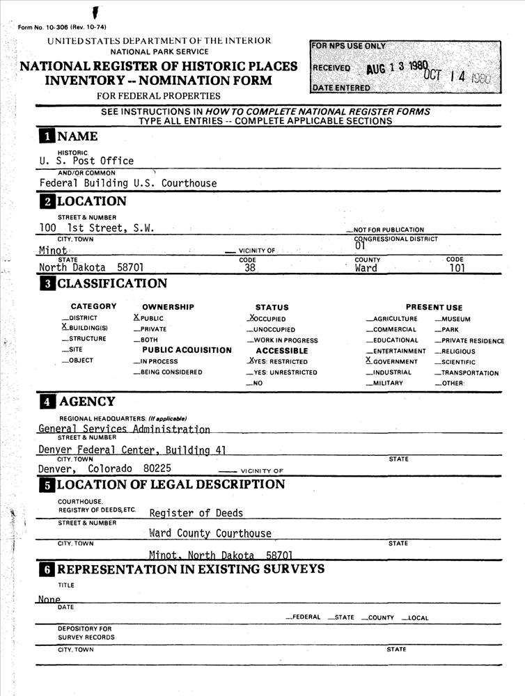 Minot ; 100 1st St., SW