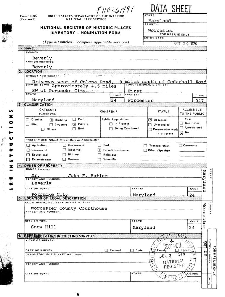 Pocomoke City ; 4.5 mi. SW of Pocomoke City off Cedarhall Rd.