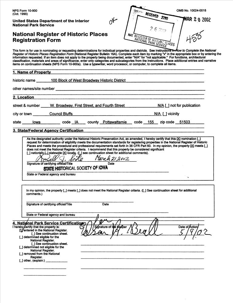 Council Bluffs ; W. Broadway, First St., and Fourth St.
