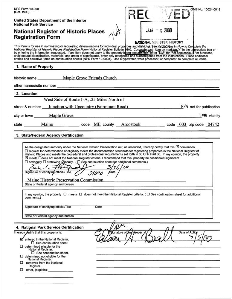 Maple Grove ; West Side of Rte 1-A, 0.25 mi. N of jct with Upcountry (Fairmount Rd.)
