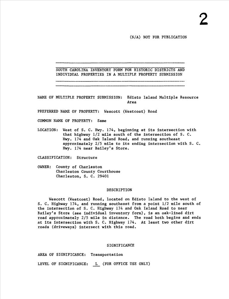 Edisto Island ; W of SC 174