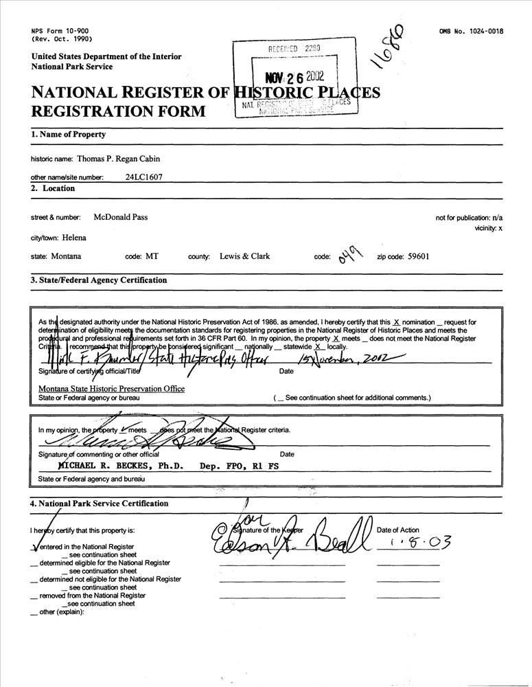 Regan, Thomas P., Cabin