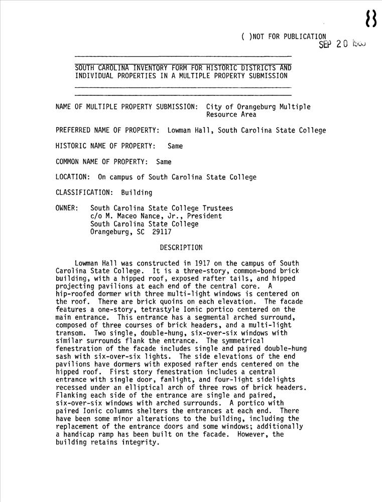 Lowman Hall, South Carolina State College