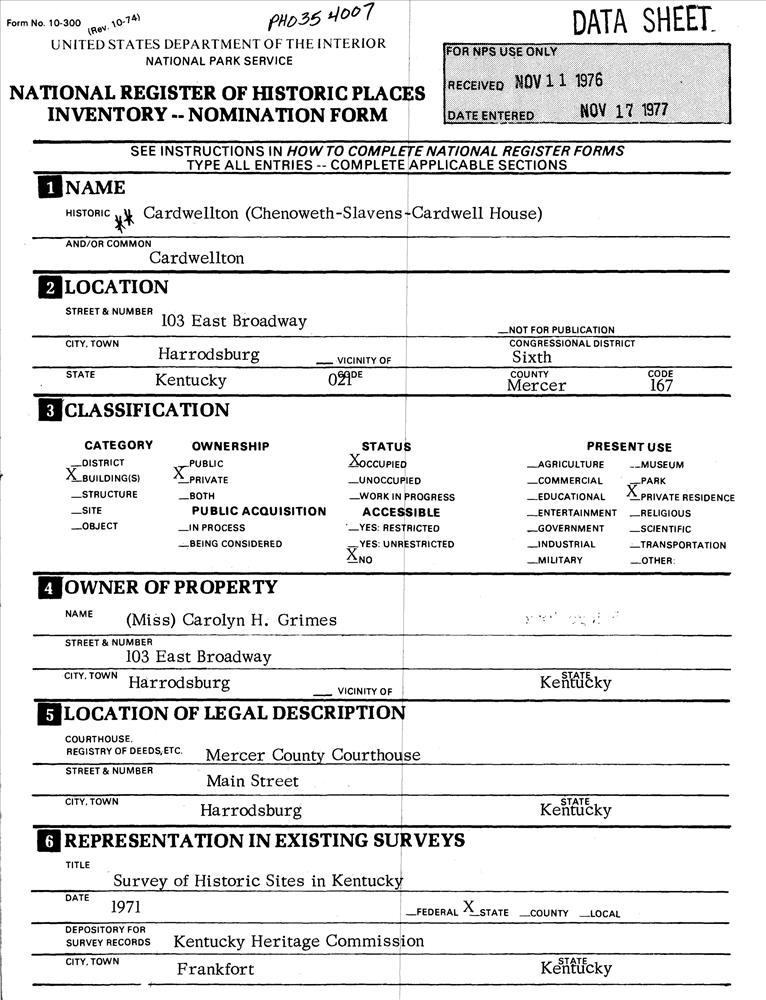 Harrodsburg ; 103 E. Broadway