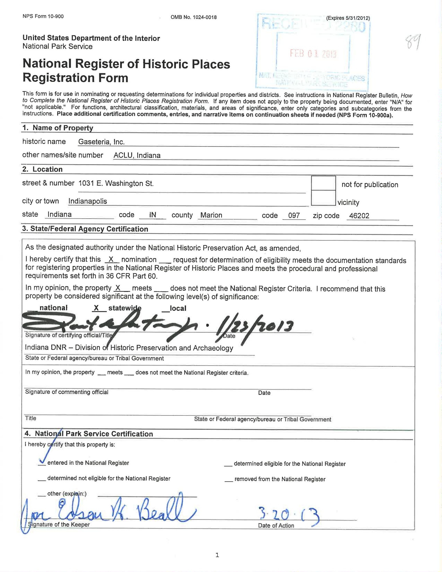 Indianapolis ; 1031 E. Washington St.