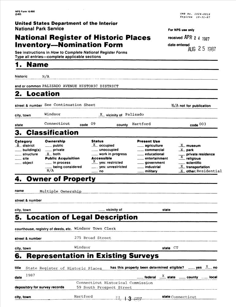 Windsor ; Palisado Ave. between the Farmington River and Bissell Ferry Rd.
