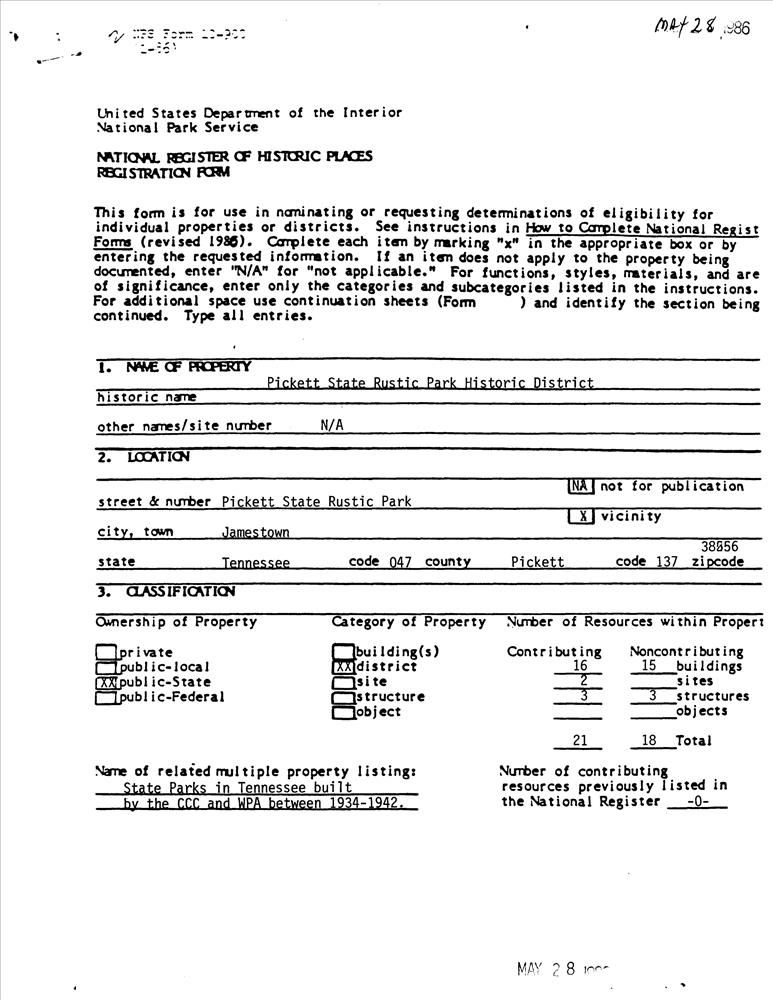 State Parks in Tennessee Built by the CCC and the WPA, 1934--1942, TR
