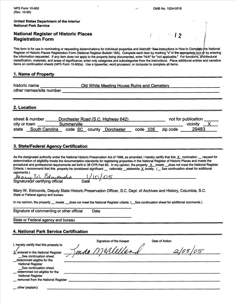 Summerville ; SC 642, approximately .5 mi. SE of jct. with SC 165
