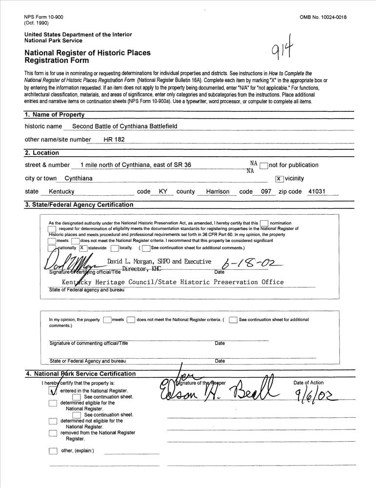 Cynthiana ; 1 mi. N of Cynthiana, E of KY 36