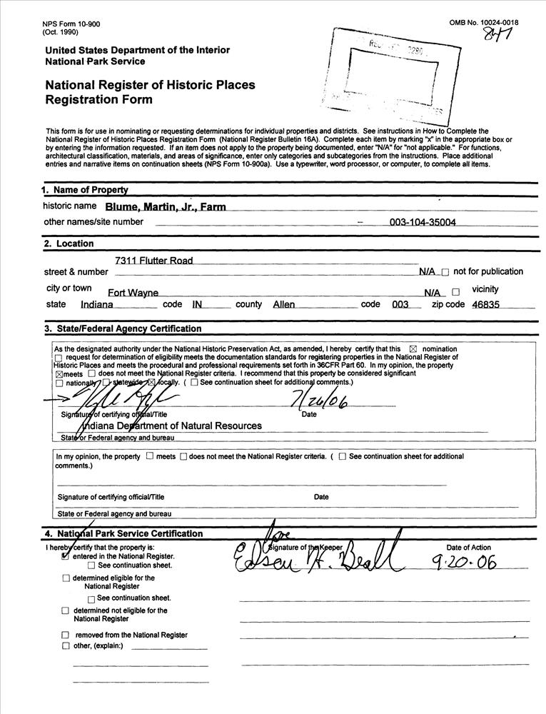Blume, Martin, Jr., Farm
