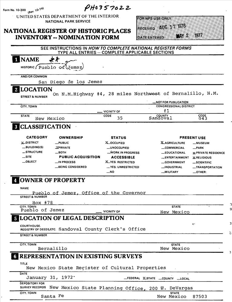 Bernalillo ; 28 mi. N of Bernalillo on NM 4