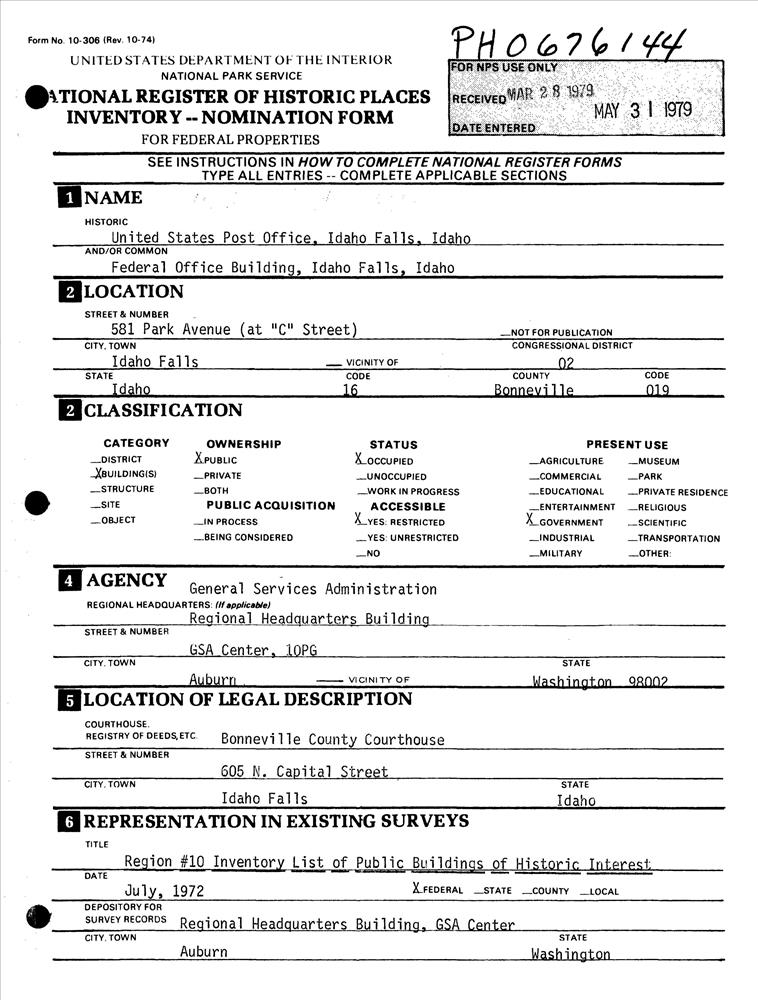 Idaho Falls ; 581 Park Ave.