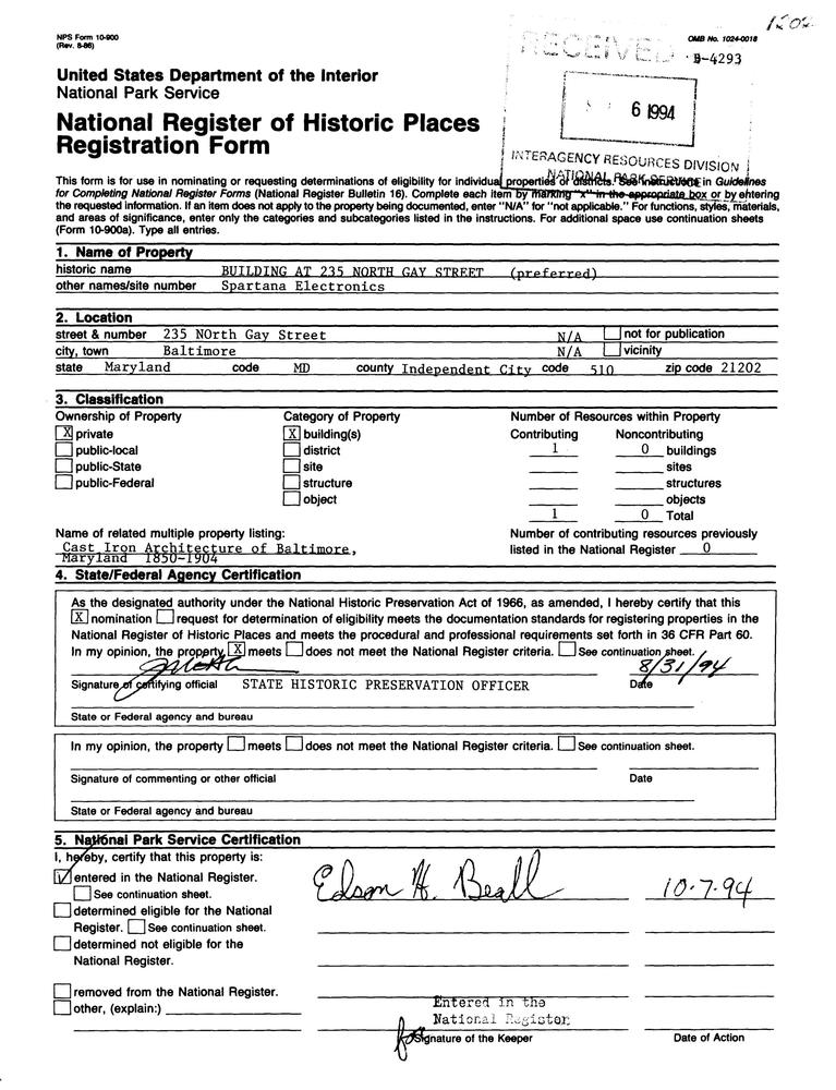 Cast Iron Architecture of Baltimore MPS