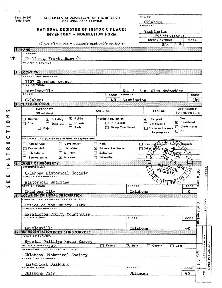 Bartlesville ; 1107 SE Cherokee Ave.