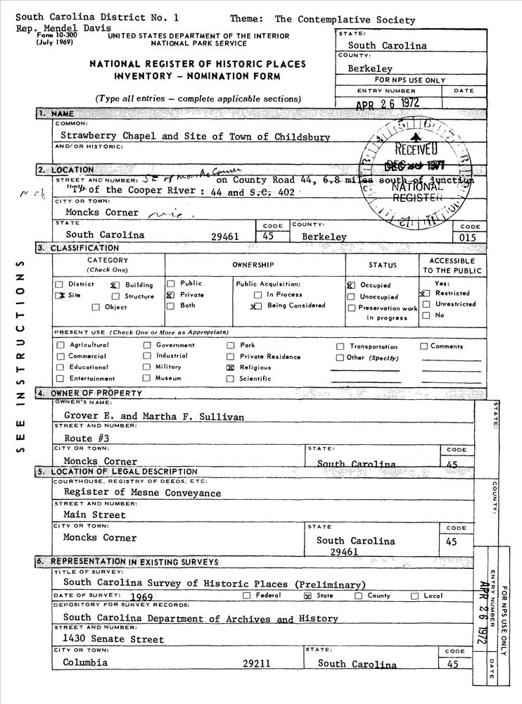 Moncks Corner ; SE of Moncks Corner on CR 44, N of the Tee of the Cooper River
