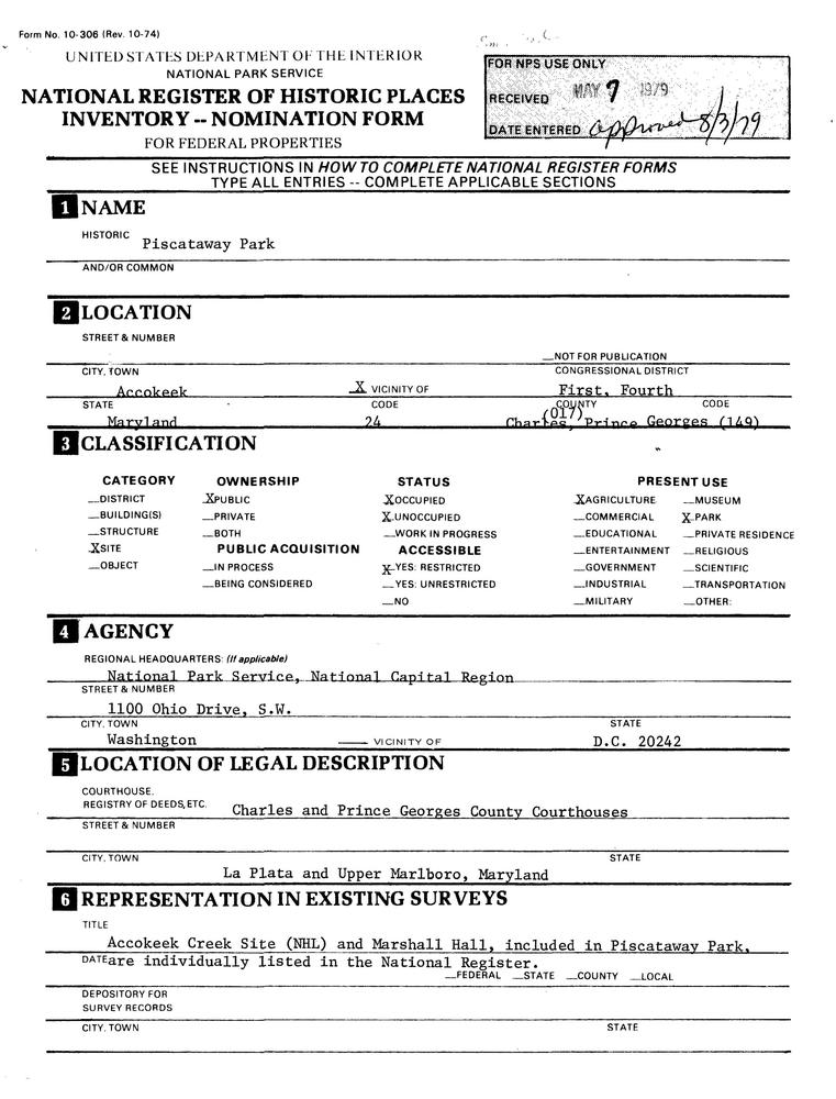 Accokeek ; E of Potomac River, south of Piscataway Creek, in Prince George's and Charles Counties
