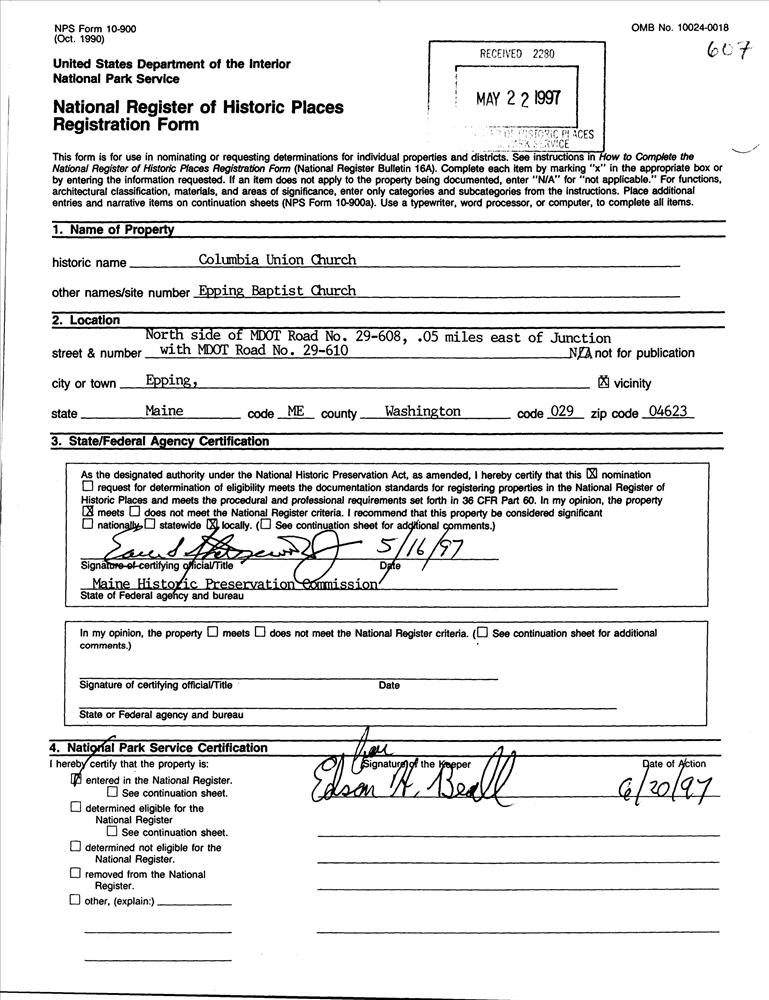 Epping ; N side of ME 29-608, .05 mi. E of jct. with ME 29-610