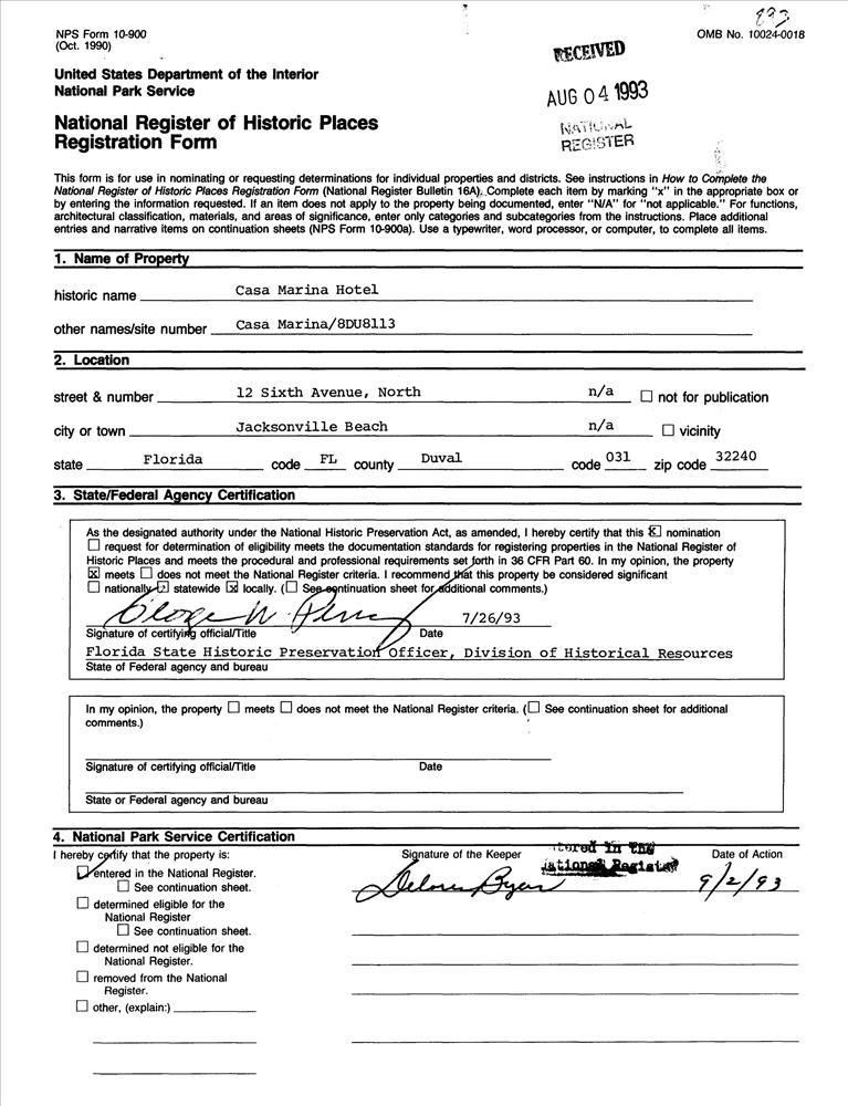 Jacksonville Beach ; 12 Sixth Ave., N.