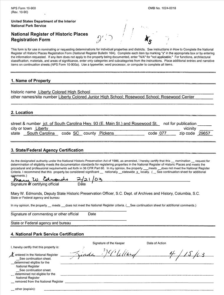 Liberty ; Jct. of SC 93 and Rosewood St.