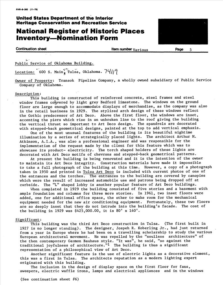 Tulsa ; 600 S. Main St.