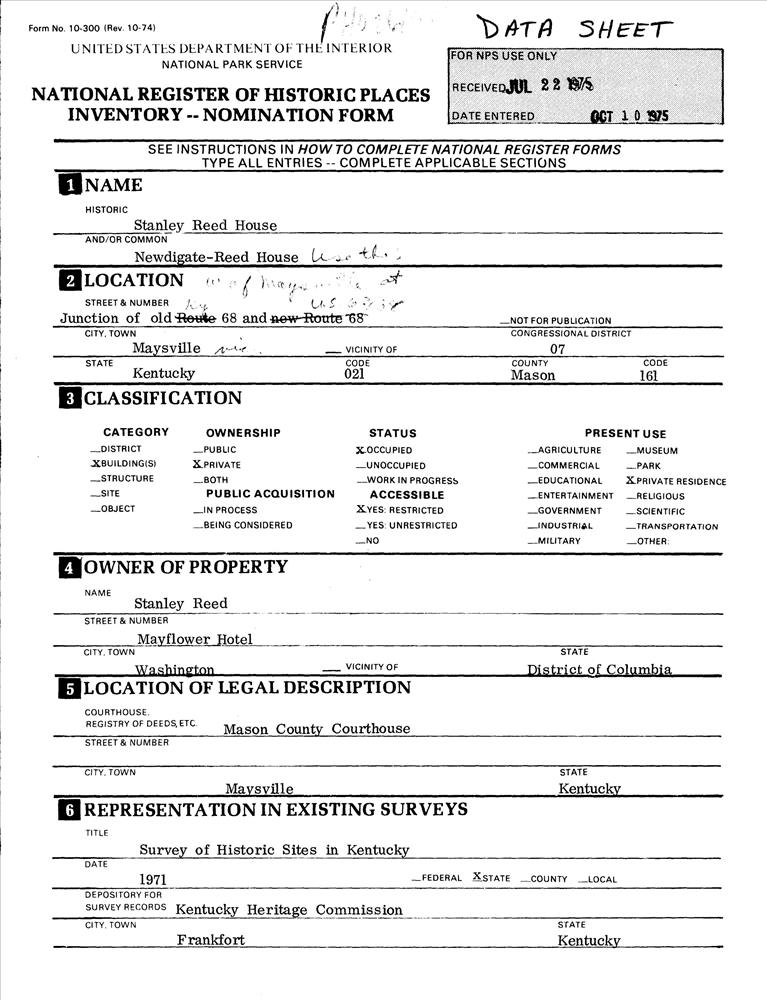 Maysville ; W of Maysville at jct. of old KY 68 and U.S. 62
