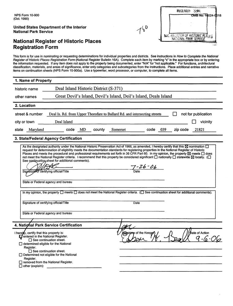 Deal Island ; Deal Is. Rd. from Upper Thorofare to Ballard Rd. and intersecting Sts.