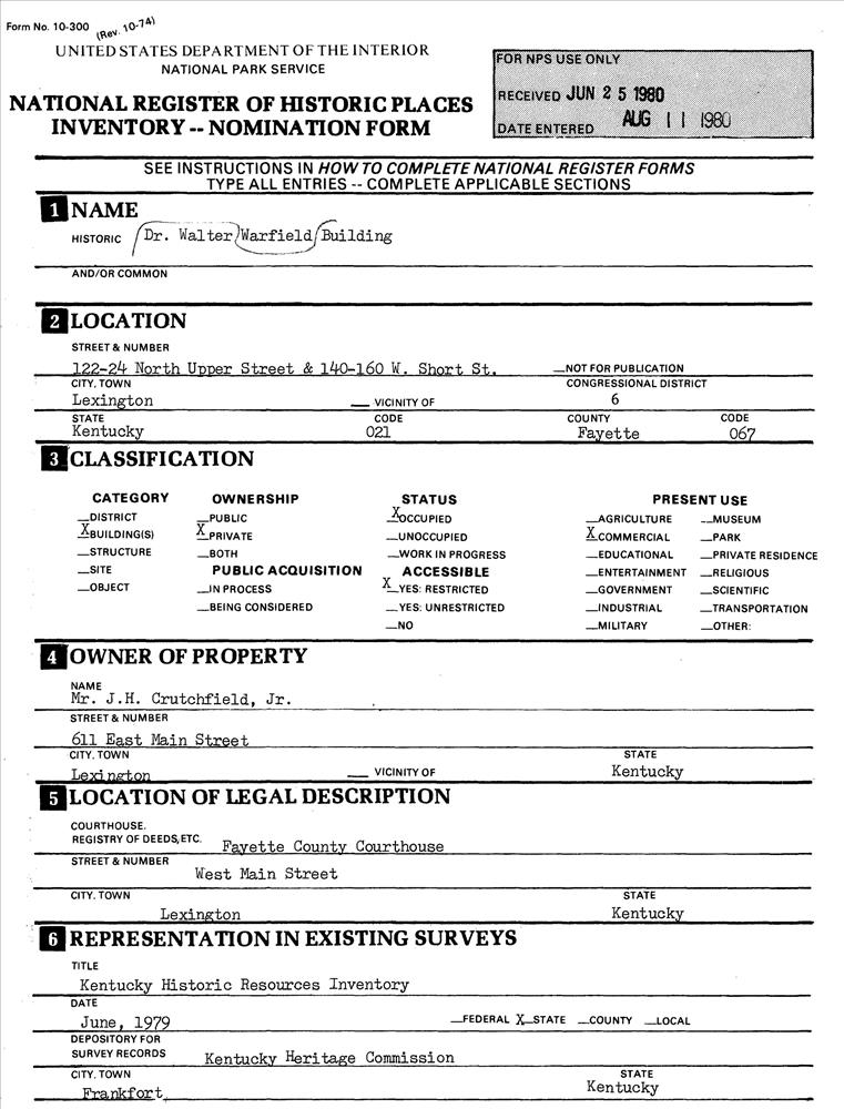 Warfield, Dr. Walter, Building