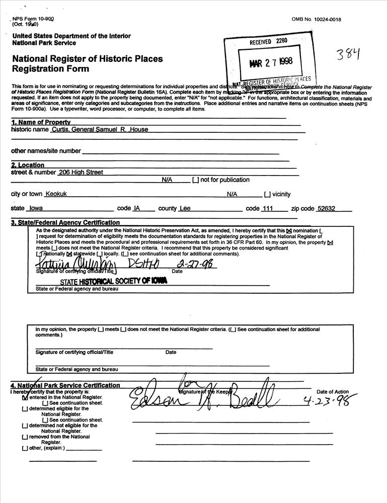 Curtis, Gen. Samuel R., House