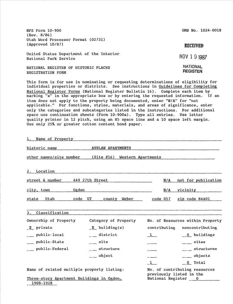 Three-Story Apartment Buildings in Ogden, 1908--1928 MPS