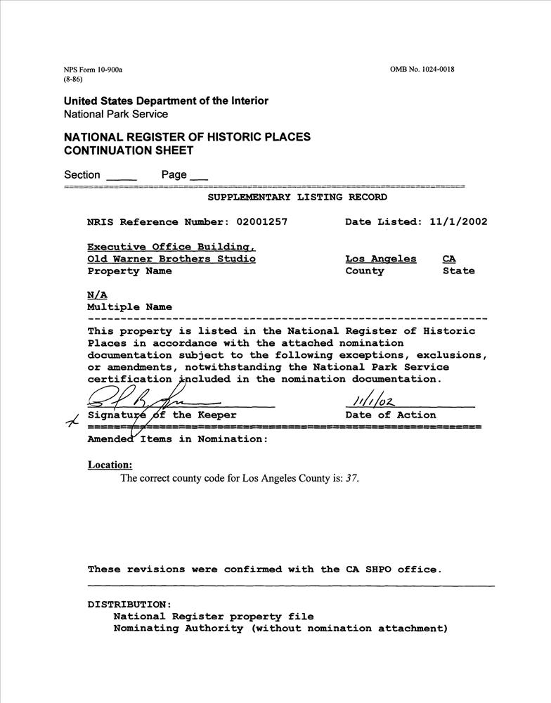 Executive Office Building, Old Warner Brothers Studio