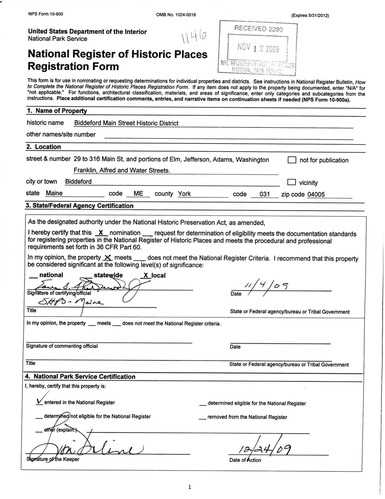 Biddeford ; 29 to 316 Main Street, and portions of Elm, Jefferson, Adams, Washington, Franklin, Alfred and Water Streets