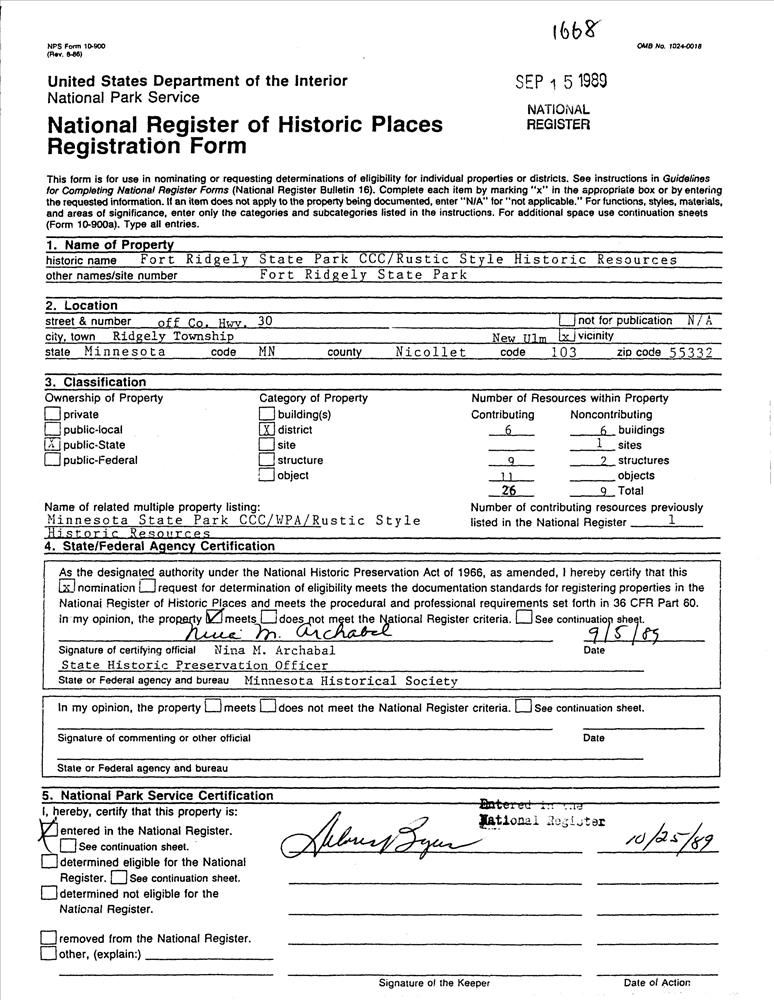 Fort Ridgely State Park CCC/Rustic Style Historic Resources