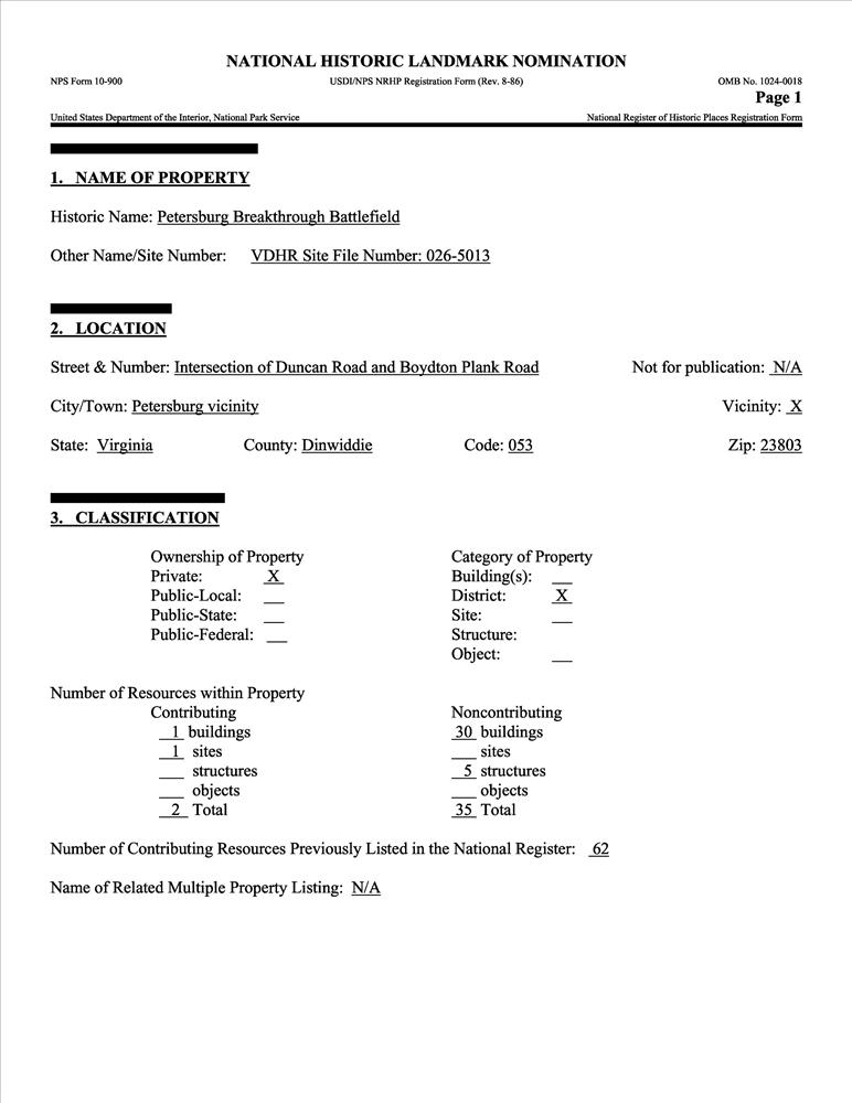 Petersburg Breakthrough Battlefield