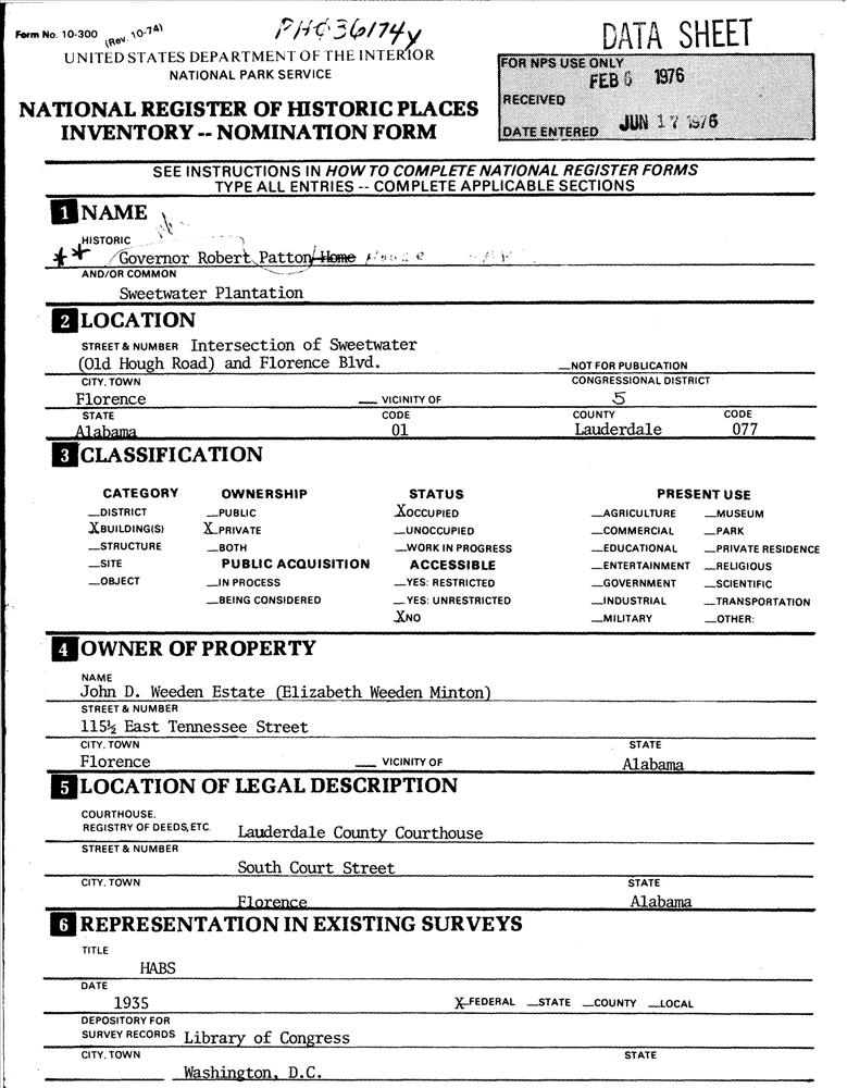 Patton, Gov. Robert, House