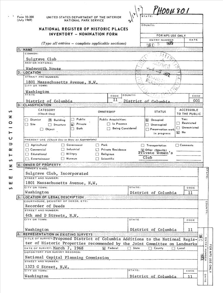 District of Columbia ; Washington ; 1801 Massachusetts Ave., NW.