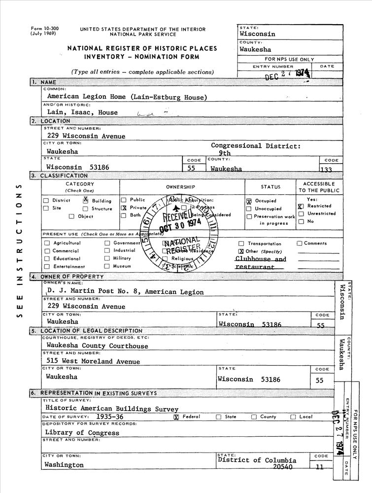 Waukesha ; 229 Wisconsin Ave.