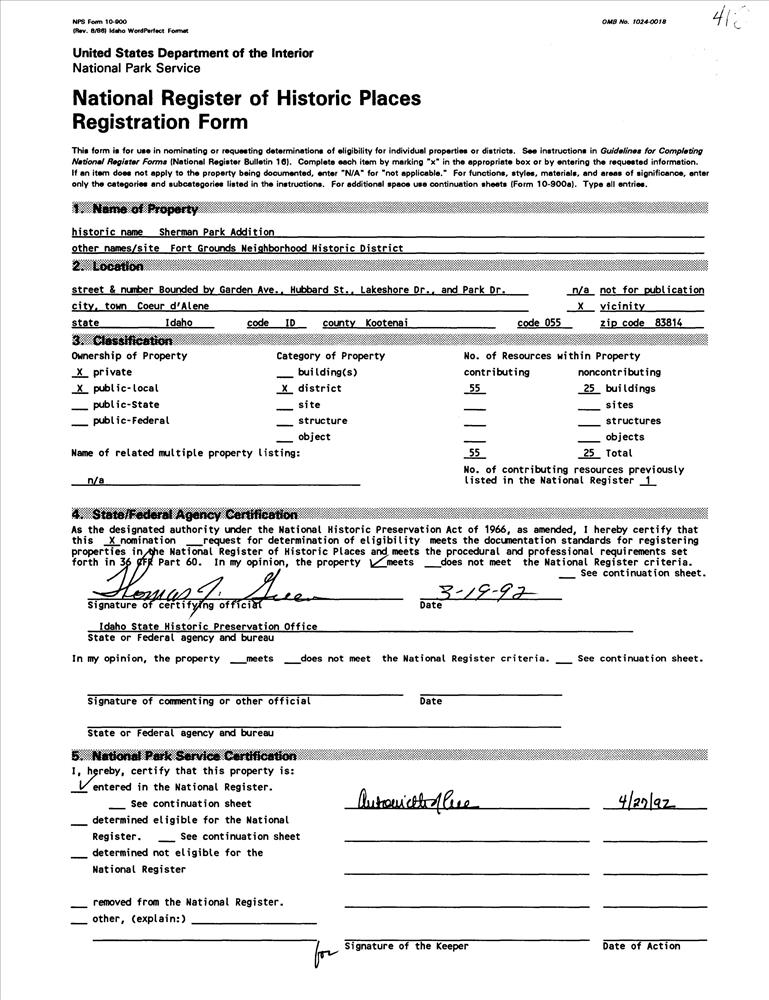 Coeur d'Alene ; Bounded by Garden Ave., Hubbard St., Lakeshore Dr. and Park Dr.