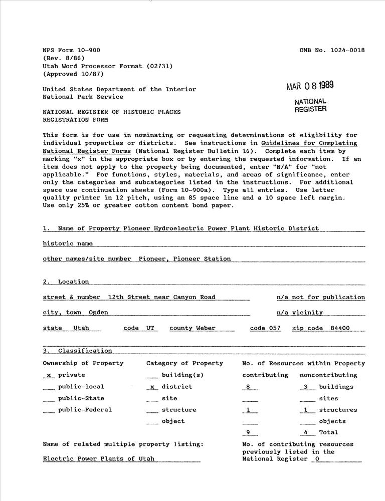 Electric Power Plants of Utah MPS