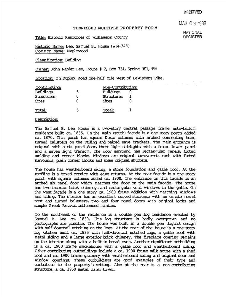 Lee, Samuel B., House